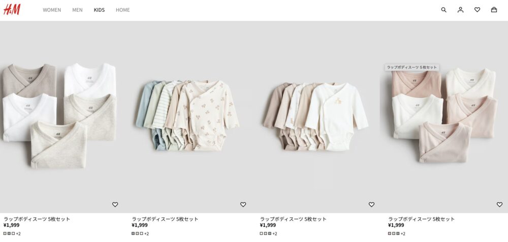 日本のブランドに比べて少しスリムな作りなので、シュッとした赤ちゃんの体型によくフィットします。オーガニックコットンを使用しているものが多く、1,000円以下とは思えないほど肌触りが柔らかいのも特徴。まとめ買いセットだと1枚あたりの単価がグッと下がるので、一気に揃えたい時に重宝します。