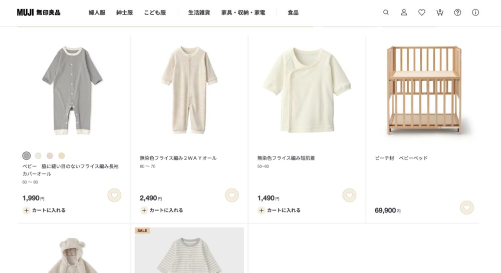無印の肌着の最大の特徴は、機能性の良さ。赤ちゃんの肌にチクチクが当たらないという徹底した「赤ちゃんファースト」な設計には感動します。無染色・無漂白のオーガニックコットンを使用しており、洗うたびに肌に馴染んでいく感覚は無印ならでは。派手さはありませんが、毎日の暮らしに寄り添う一級品です。